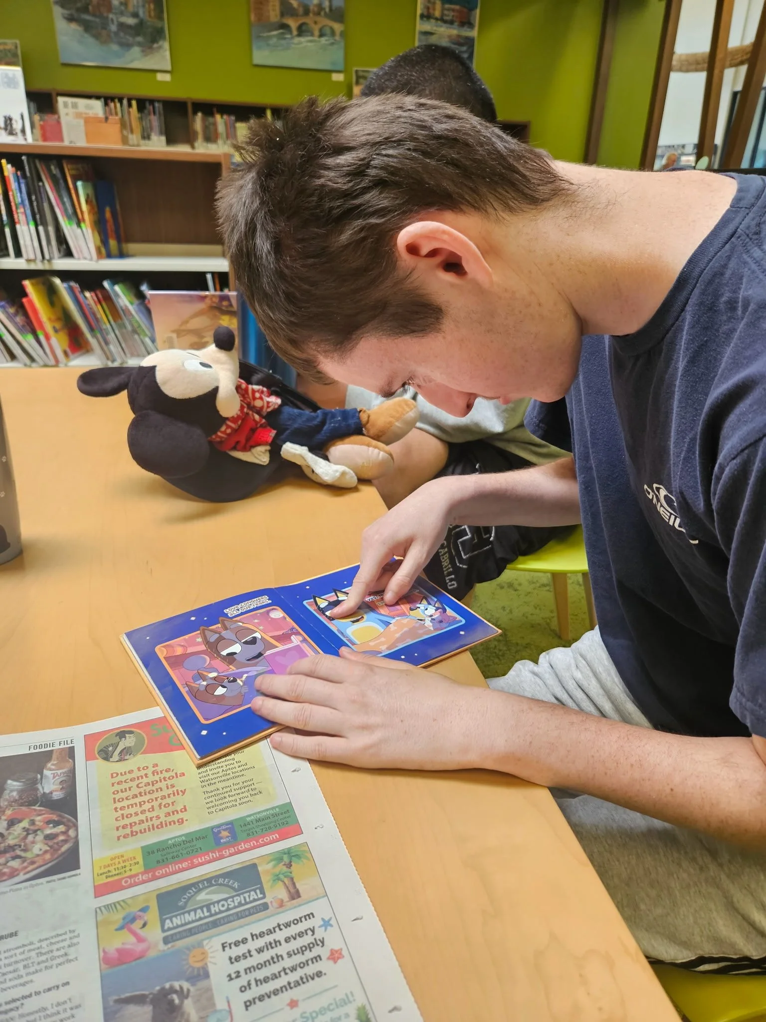 Jared reading and discovering a new interest in Bluey.